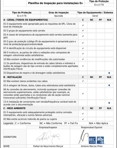 Plataforma configurada para atendimento completo à IEC 60079-17;